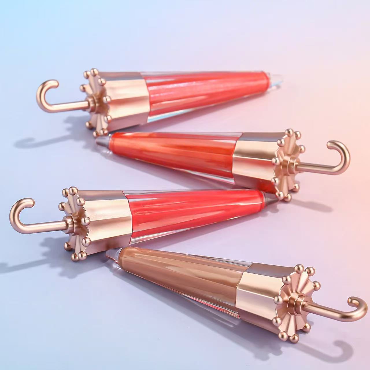 The Umbrella-Shaped Lip Gloss Collection Our umbrella-inspired lip glosses—luxurious umbrella-shaped cases with gold handles. Available in radiant shades like coral, pink, and nude, the formula glides smoothly onto lips, delivering a glossy finish with a touch of shimmer.