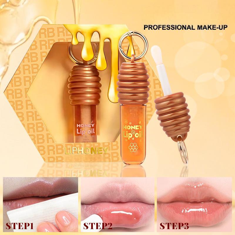 Lip Oil Honey Butter Lip Gloss Milk Honey Lip Oil Natural Honey Essence lip oil With Keychain Moisturizing Polishing lip gloss Repairs Dryness and Cracks Lip Treatment lip product